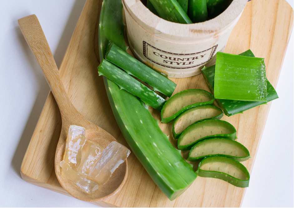 1.ว่านหางจระเข้ : ช่วยลดการอักเสบ บรรเทาอาการ ผิวไหม้จากแสงแดด เพิ่มความชุ่มชื้น โดยสามารถใช้ในรูปแบบเจล ครีม หรือใช้วุ้นสดจากใบ โดยต้องล้างยางออกให้สะอาดเพื่อลดการระคายเคือง