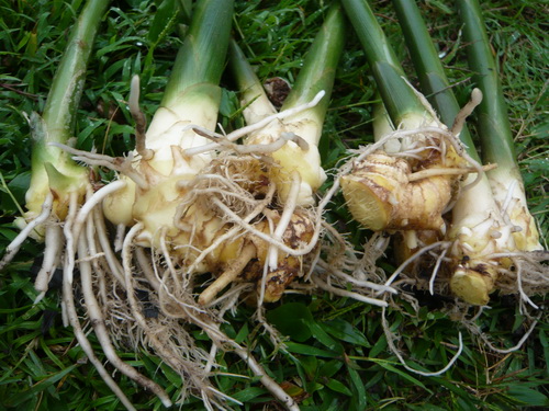 เหง้านำไปบดละลายน้ำดื่มแก้อาการปวดท้อง
