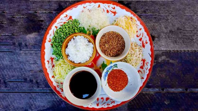 ผักฤทธิ์เย็น : มะม่วงดิบ ส้มโอ มะละกอห่าม ข้าวสวย\น้ำปรุงข้าวยำ : เห็ดหอมแห้ง ตะไคร้ หอมแดง ข่า น้ำตาลทรายแดง เกลือ