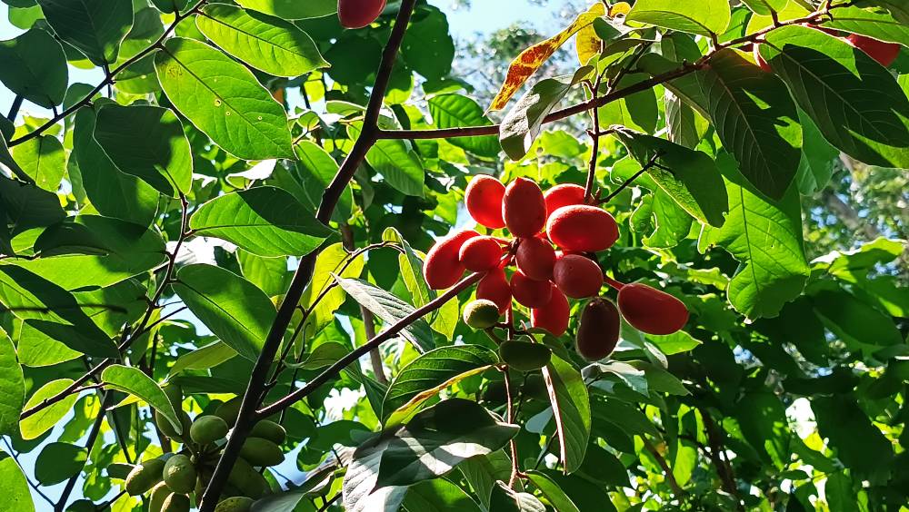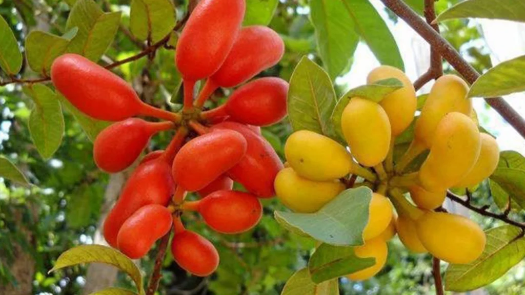 ผลทรง “นมสัตว์”: ผลออกเป็นช่อ ช่อหนึ่งมีประมาณ 25-35 ผล เมื่อสุกจะมีสีแดงจัดจ้าน รสชาติเปรี้ยวอมหวาน (หวานส้ม) มีเมล็ดสีดำอยู่ภายในจำนวนมาก
