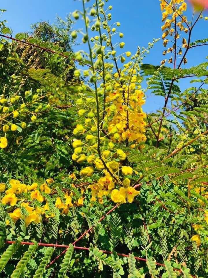 ใบ เป็นประเภทใบประกอบแบบขนนก 2 ชั้น ออกเรียงสลับก้านใบหลักยาว 25-30 เซนติเมตร มีก้านใบแขนงย่อย 10-30 คู่ และใบย่อยอีกชั้น 10-20 คู่ สีเขียว ขอบใบเรียบ ลักษณะคล้ายใบชะอม ดอก ออกเป็นช่อที่สีเหลืองสด มีแต้มสีแดง เขียวอมชมพู หรือน้ำตาล ออกที่ปลายกิ่ง