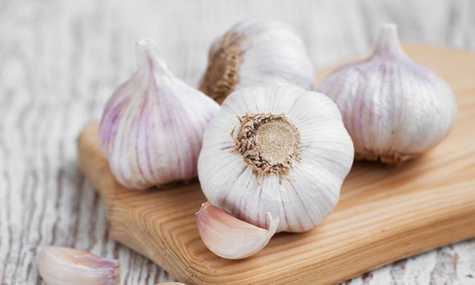 หรือกาลิก มีปริมาณสารอัลลิซินสูง เป็นสารแอนติออกซิแดนท์ชั้นดี ช่วยลดระดับไขมัน คอเลสเตอรอล ความดันโลหิตสูง และระดับน้ำตาลในเลือดได้ แต่ถ้าหากกินร่วมกับกลุ่มยาต้านการแข็งตัวของเลือด อาจทำให้ประสิทธิภาพของยาลดลงได้ รวมไปถึงการกินร่วมกับยารักษาความดันโลหิตสูง ยาเบาหวาน อาจทำให้ระดับอินซูลินต่ำลงจนเกินไป อาจทำให้วูบได้