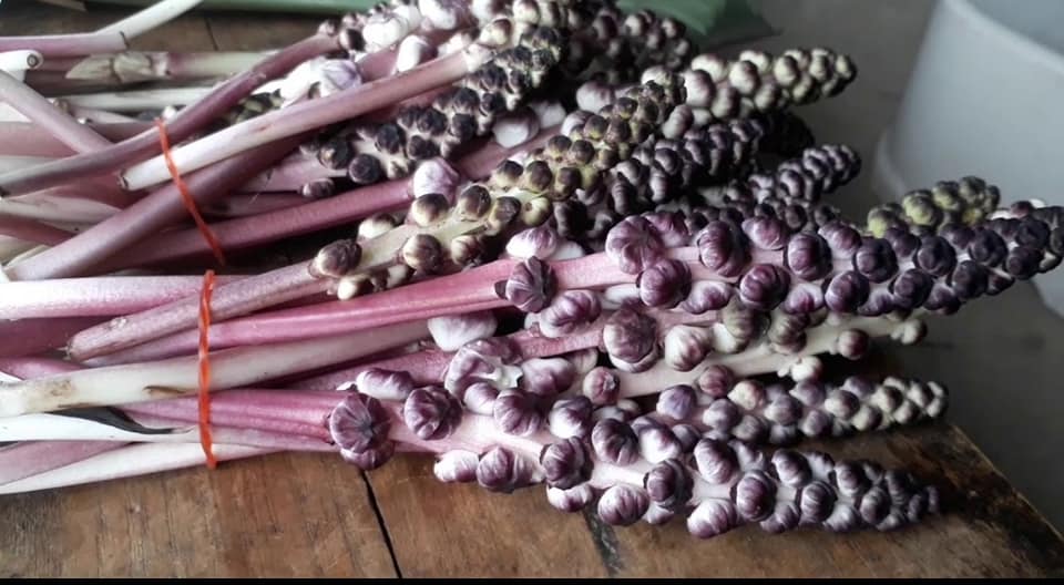 บางพื้นที่เรียกต้นนางแลว ผักพื้นบ้าน (ที่หลายคนอาจไม่รู้จัก) เป็นพืชป่าหายาก 1 ปีออกดอกครั้งเดียว ชอบอยู่ในพื้นที่ร่มเงา ใต้ต้นไม้ใหญ่ แสงแดดรำไร