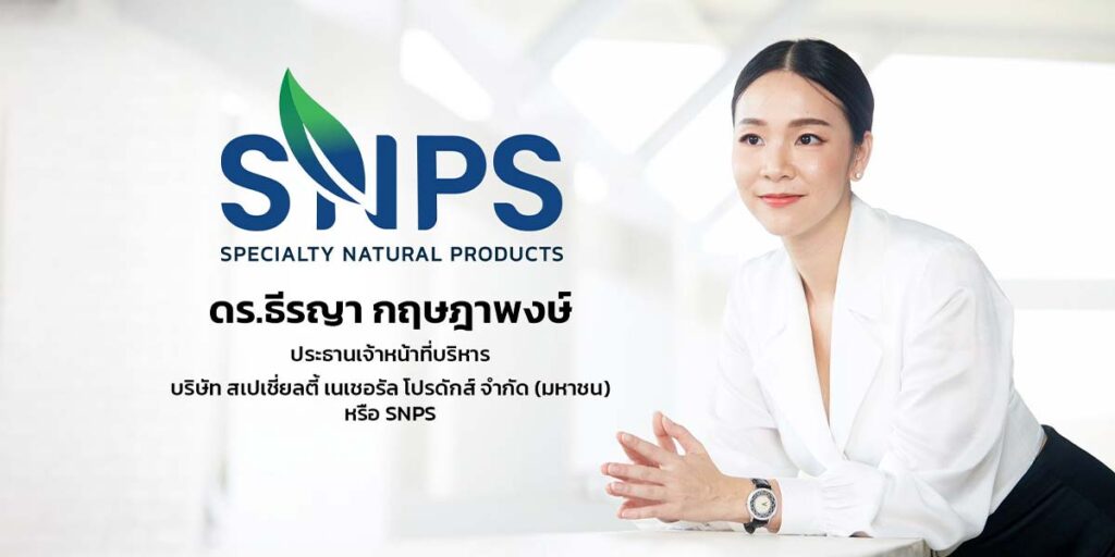 นางสาวธีรญา กฤษฎาพงษ์ ประธานเจ้าหน้าที่บริหาร บมจ.สเปเชี่ยลตี้ เนเชอรัล โปรดักส์ [SNPS] เปิดเผยว่า ก้าวต่อไปของ SNPS มุ่งเดินหน้าธุรกิจเน้นการเติบโตที่มีคุณภาพ โดยยึดหลัก 3 เสาหลักเชิงกลยุทธ์ ได้แก่